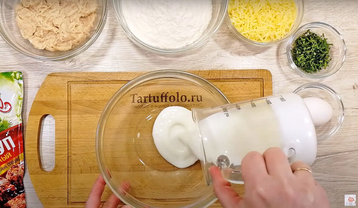 Для начала понадобится 200 мл кефира с жирностью 3,2%. К нему добавляется одно яйцо и немного соли (примерно половина чайной ложки). Все тщательно перемешивается венчиком.