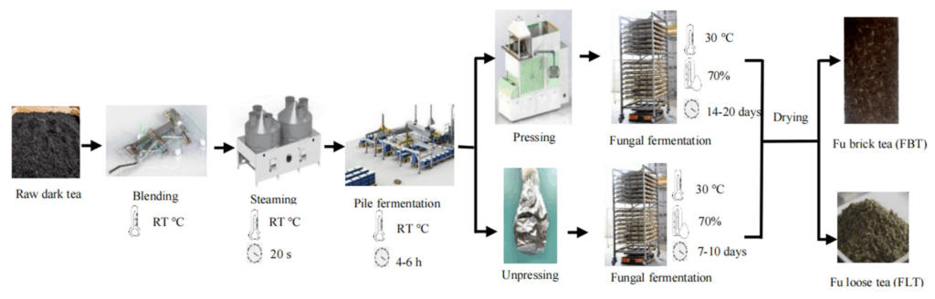 Недавние исследования китайских ученых пролили свет на то, как способ прессовки чая влияет на его химический состав и органолептические характеристики. В ходе экспериментов была проведена ферментация двух партий Фу Чжуаня из одного и того же сырья. Одна из партий прошла обязательную прессовку, в то время как другая оставалась в рассыпном виде на протяжении всей ферментации. Это позволило исследователям сравнить результаты.