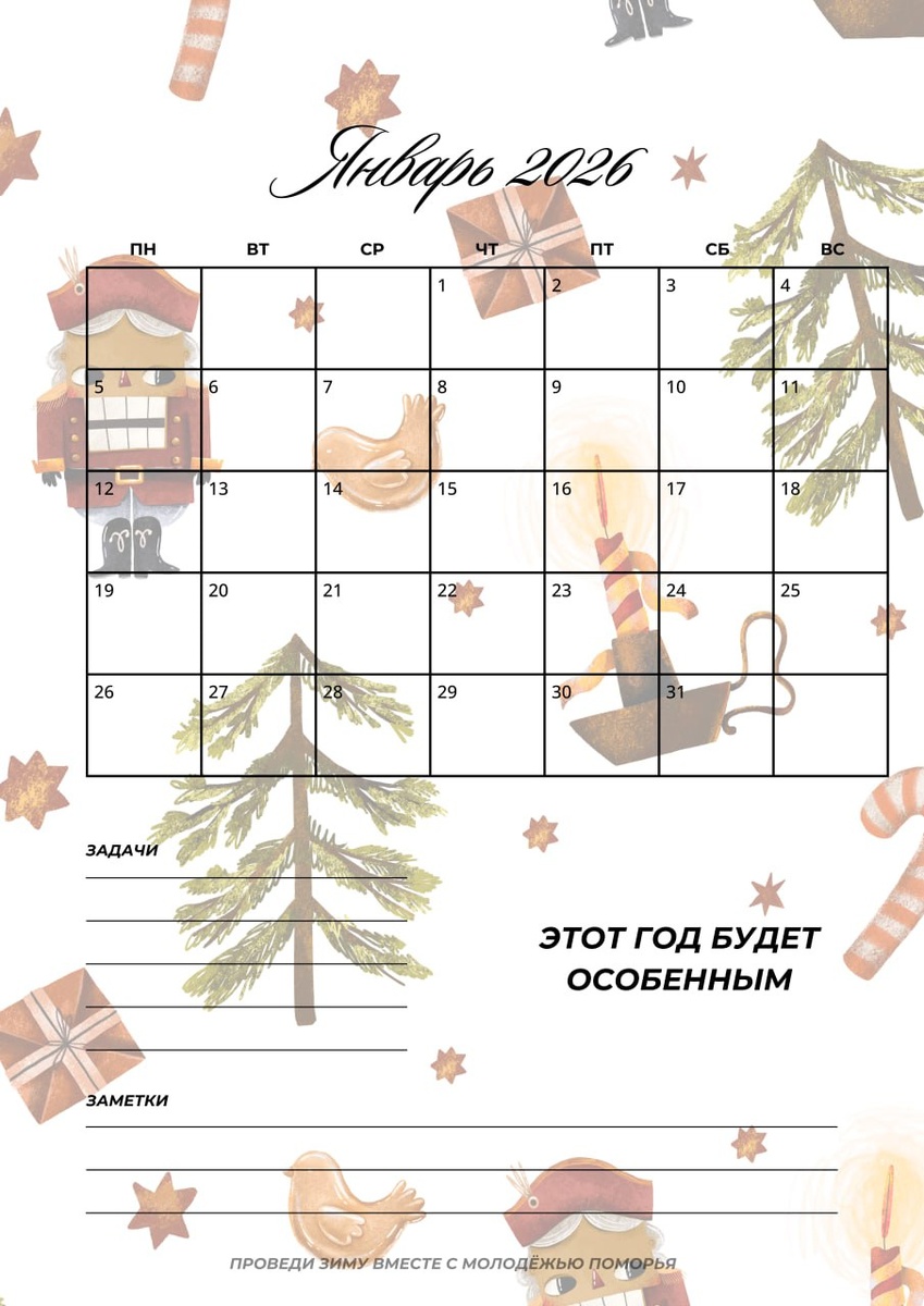 Настало время покинуть мандариновую спячку и вновь взять в руки свои мечты! С обновлённым планером на месяц, вдохновляйтесь свежими идеями и стремитесь к вершинам.