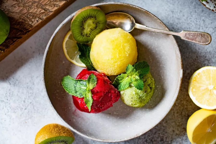 Приготовив эти три вида сорбетов, вы создадите настоящую симфонию вкусов. Лимонный сорбет очарует своим нежным цитрусовым оттенком, малиновый порадует сладкоежек, а киви подарит тропические нотки с кисло-сладким финалом. По желанию можно использовать мороженицу, чтобы ускорить процесс и избежать появления крупных кристаллов льда.