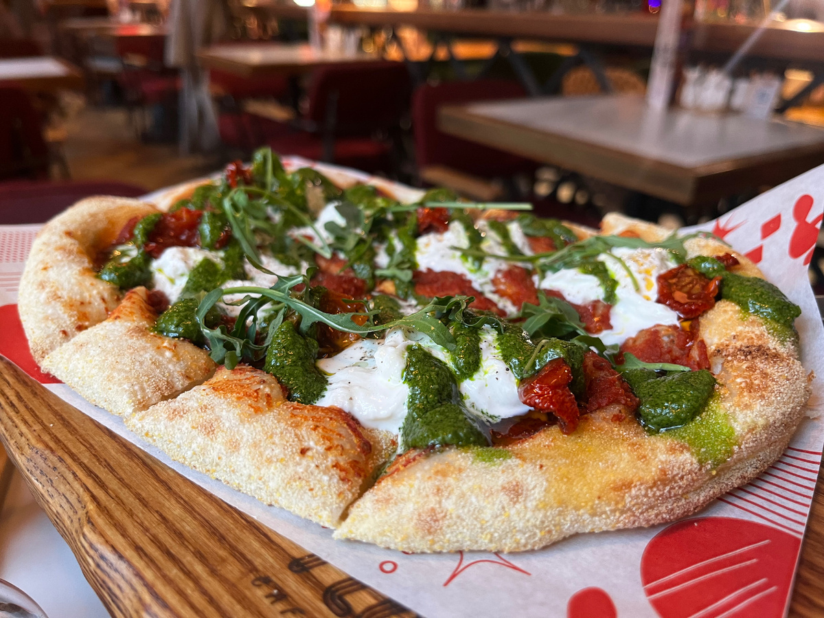 - Примером может служить простая, но насыщенная пицца с томатами и страчателлой, которую попробовали в итальянском ресторане. Эта простота вдохновила на создание более сытного блюда — питы с фаршем, и верхушки, как в ресторане, из рукколы, страчателлы и помидоров.
