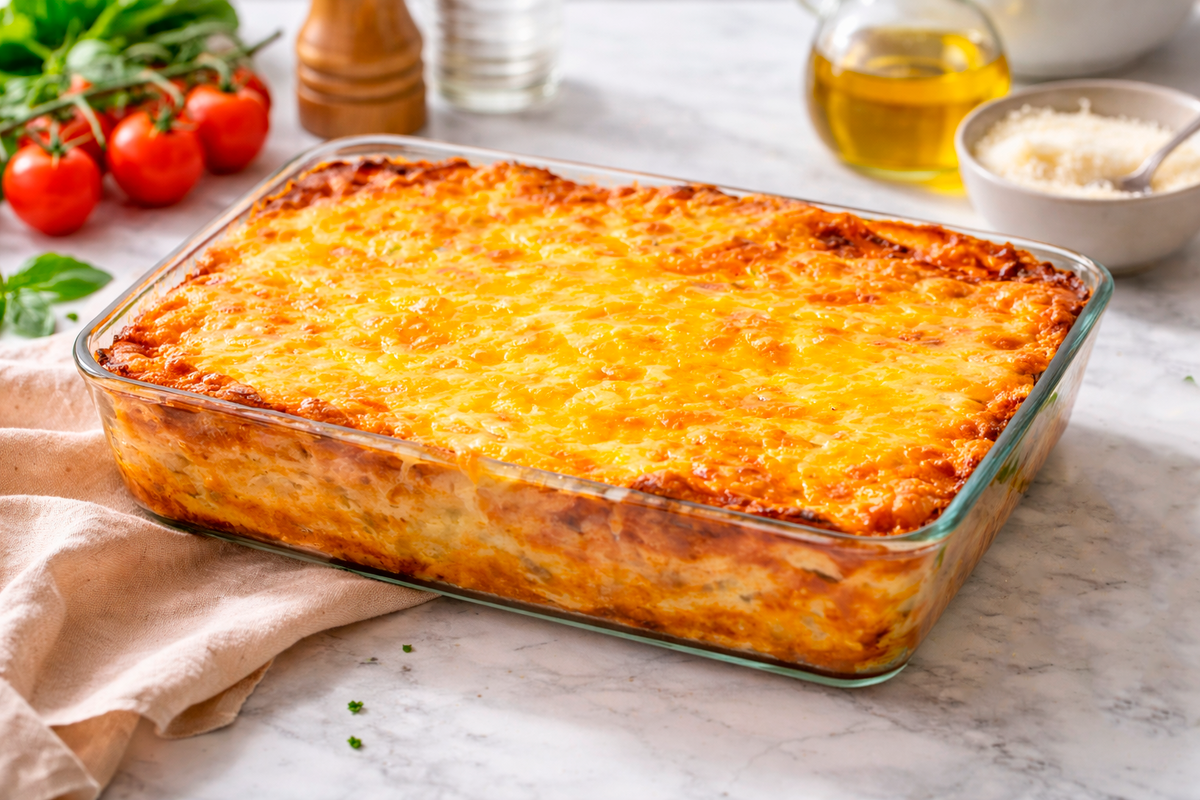 7. После этого посыпьте оставшимся сыром и уменьшите температуру до 180°C, запекая еще 15 минут.