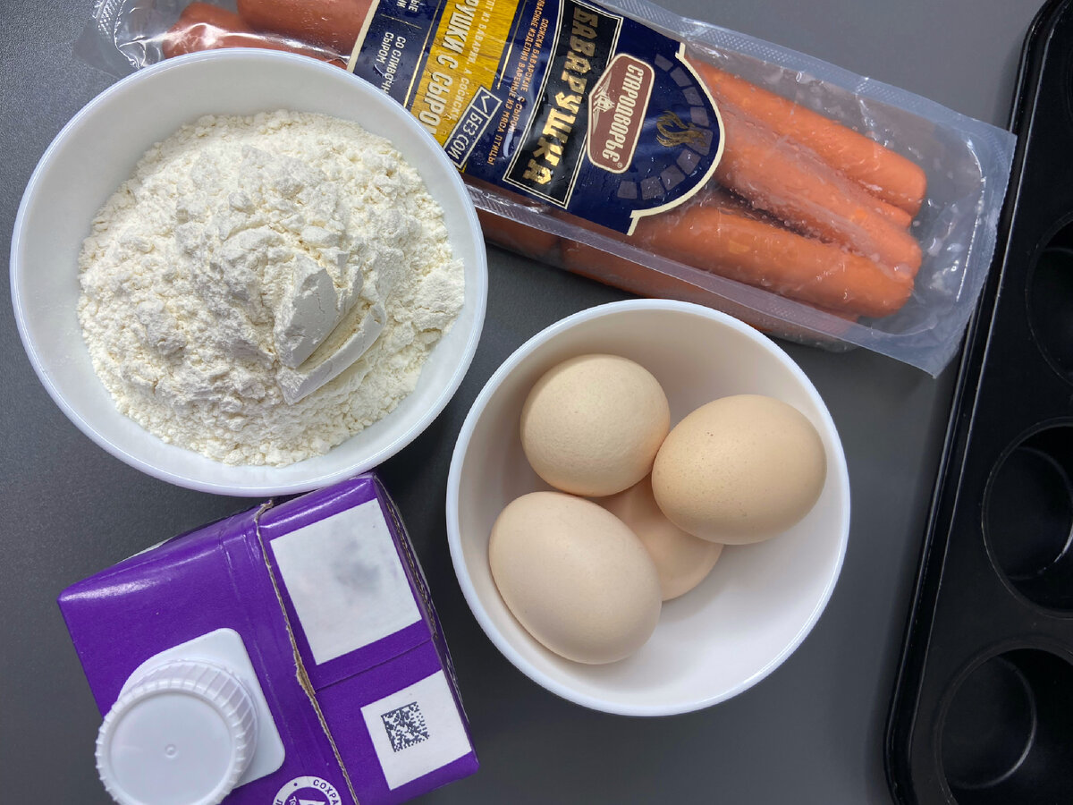 - Ингредиенты: Переложить сосиски в глубокую миску, добавить взбитые яйца, натёртый на крупной тёрке сыр, сливки с жирностью 10%.