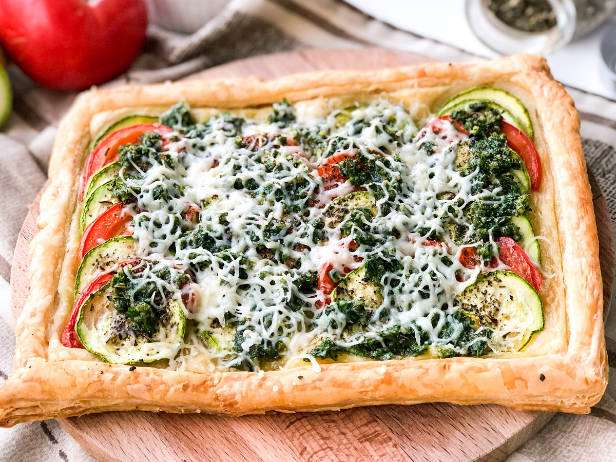 Этот пирог станет настоящим хитом на вашей кухне, особенно в теплые месяцы года. Он универсален благодаря разнообразию начинок – на этот раз в рецепте используются кабачок и помидор, но вы с легкостью можете добавить болгарский перец, баклажан, тыкву или молодую капусту.