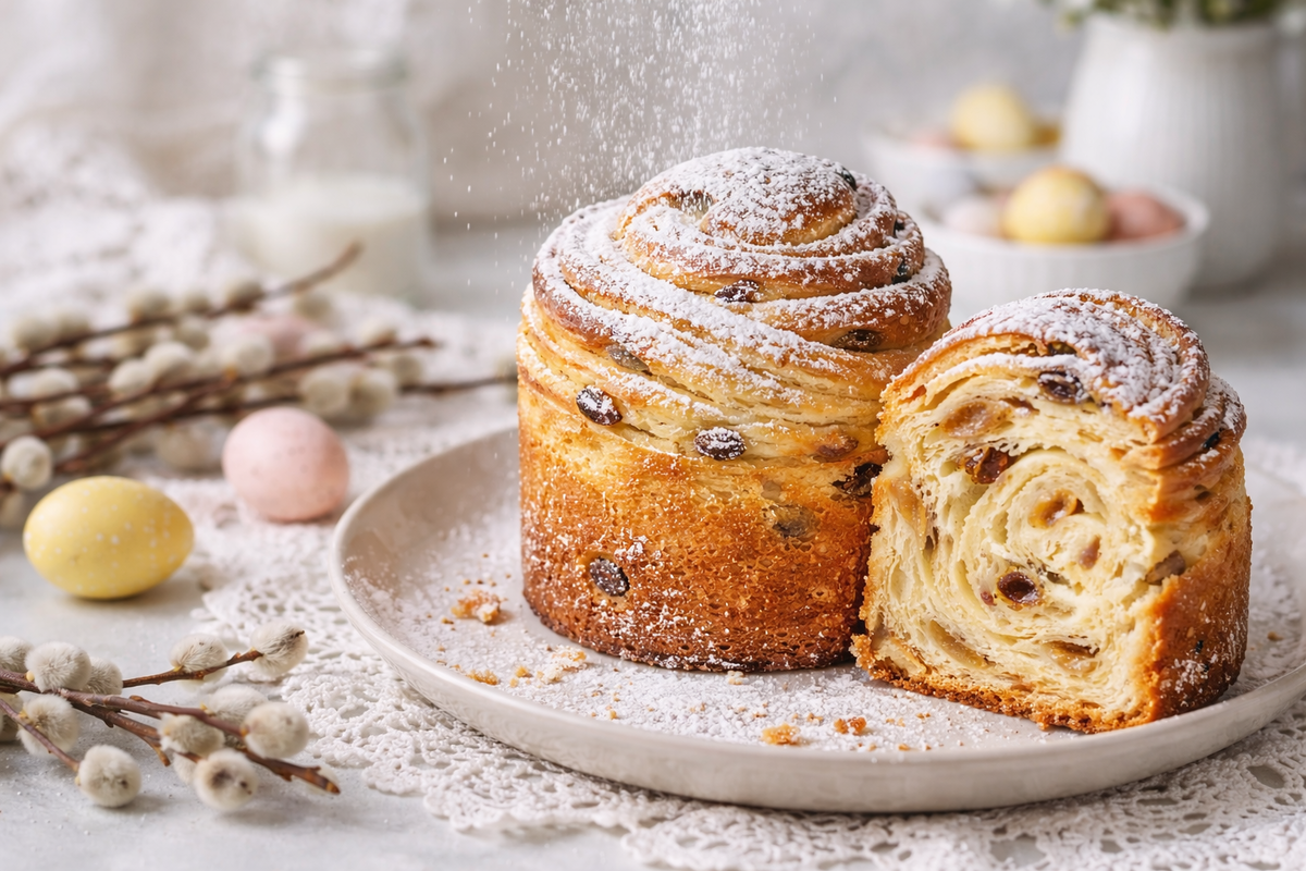 Представляем вашему вниманию рецепт кулича-краффина — который сочетает в себе лучшую традицию куличей с оригинальностью круассанов. Это десерт с воздушной, слоистой текстурой и ярким вкусом, который станет настоящим украшением любого праздничного стола.