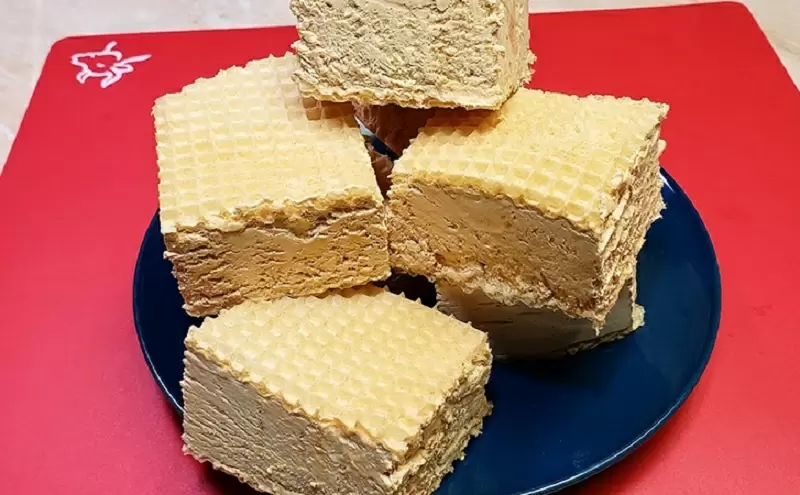 Следующий шаг — добавить варёную сгущёнку. Этот компонент придаст крему глубокий, слегка карамельный вкус. Затем соединить обе массы, чтобы получить нежную пену. Для создания десерта потребуется выбрать круглую форму, которая подходит по размеру коржей. На дно укладывается первый вафельный корж, затем аккуратно выкладывается воздушный крем и накрывается вторым коржом, прижимая его, но не слишком сильно, чтобы не размягчить.