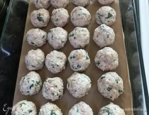 Для подготовки мясных шариков нужно объединить все ингредиенты с выбранным фаршем. Затем сформированные шарики помещаются в форму и запекаются в духовке при температуре 220°C в течение 25-30 минут.