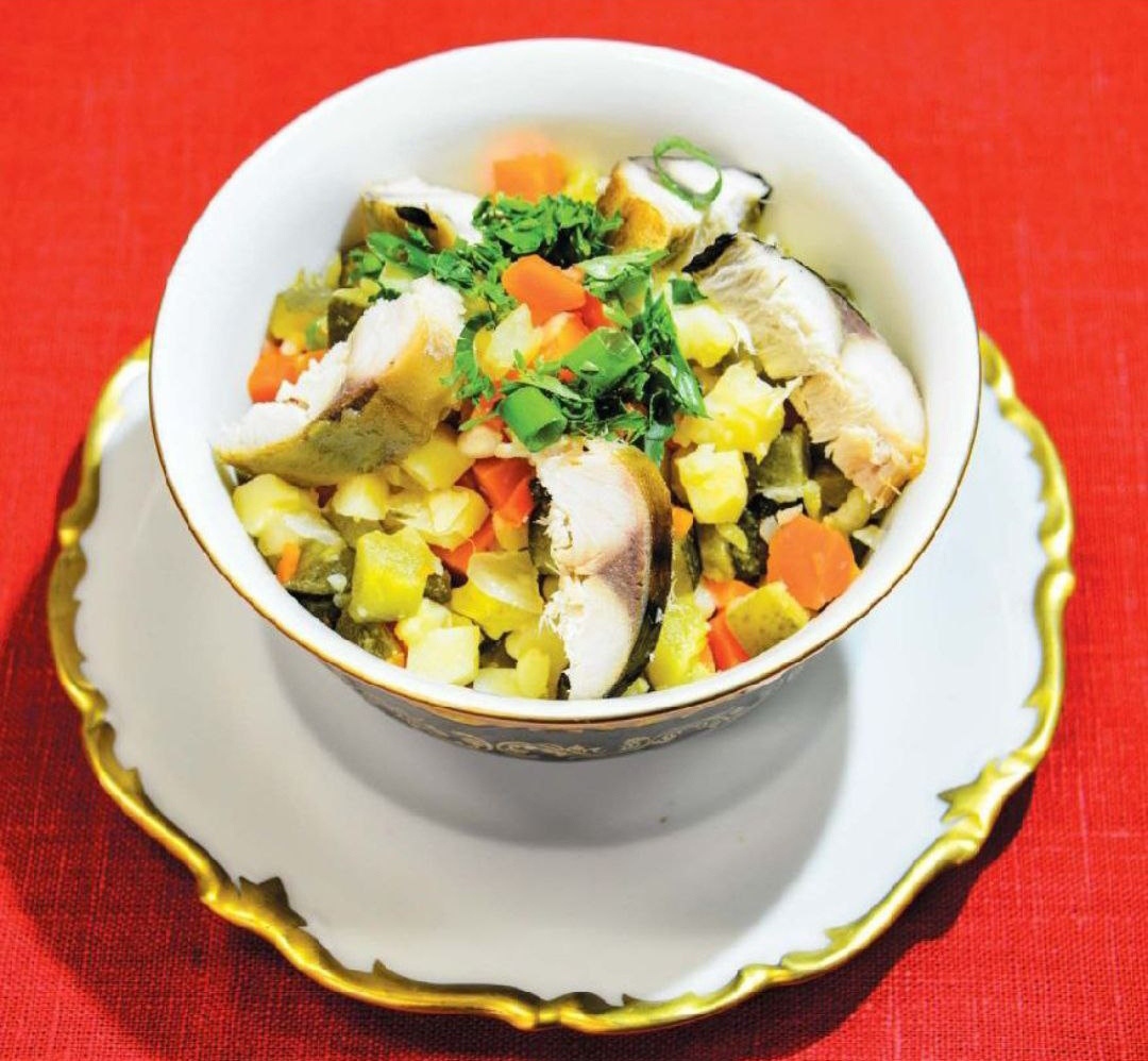 Оливье с копченой скумбрией