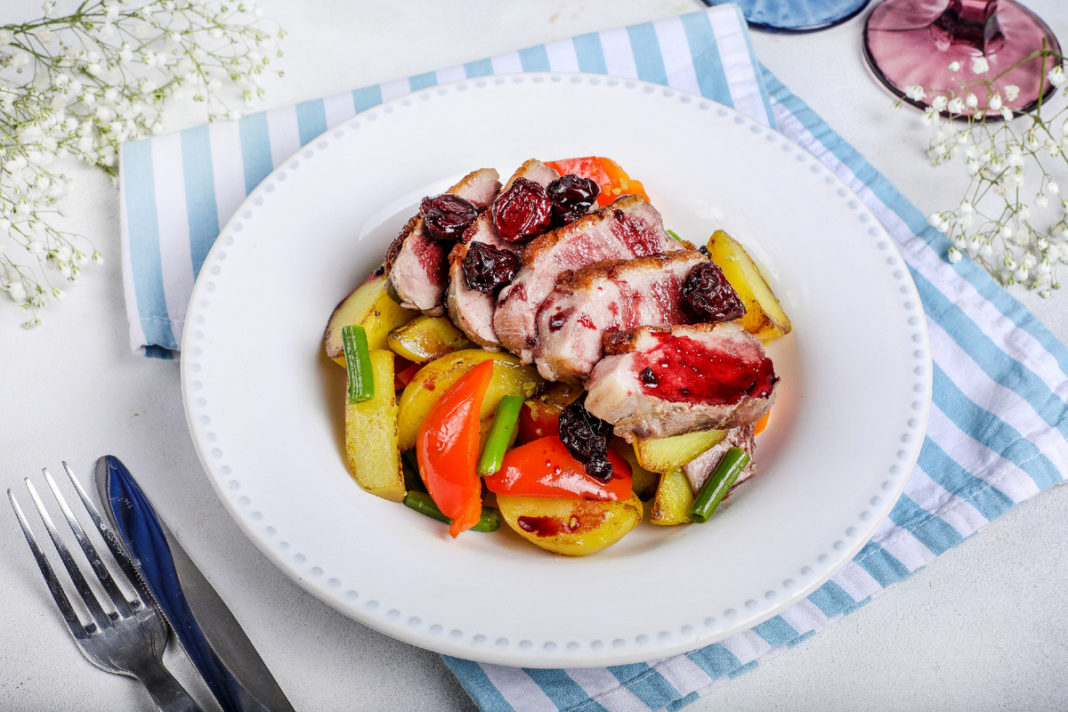 Ароматная утиная грудка, запечённая до совершенства, сочетаясь с насыщенным вишнёвым соусом, поражает даже самых взыскательных гурманов. Это блюдо не только привнесет изысканность в повседневный ужин, но и станет настоящим хитом на праздничном столе.