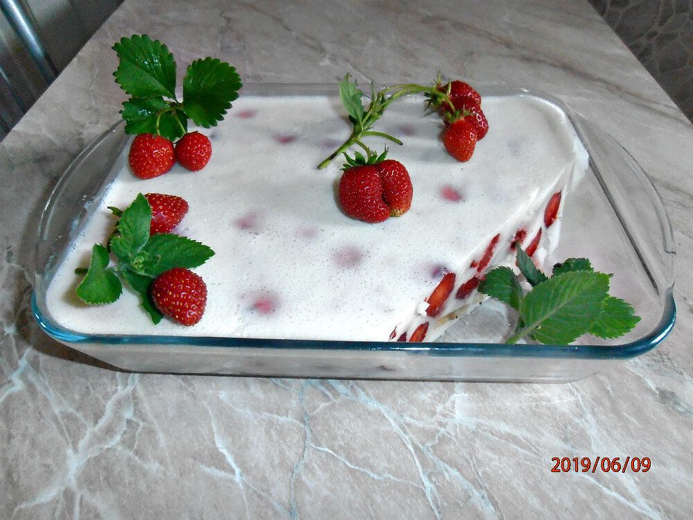 6. Осторожно встряхните форму, чтобы клубника полностью погрузилась в смесь, и поставьте в холодильник на несколько часов, желательно на ночь.