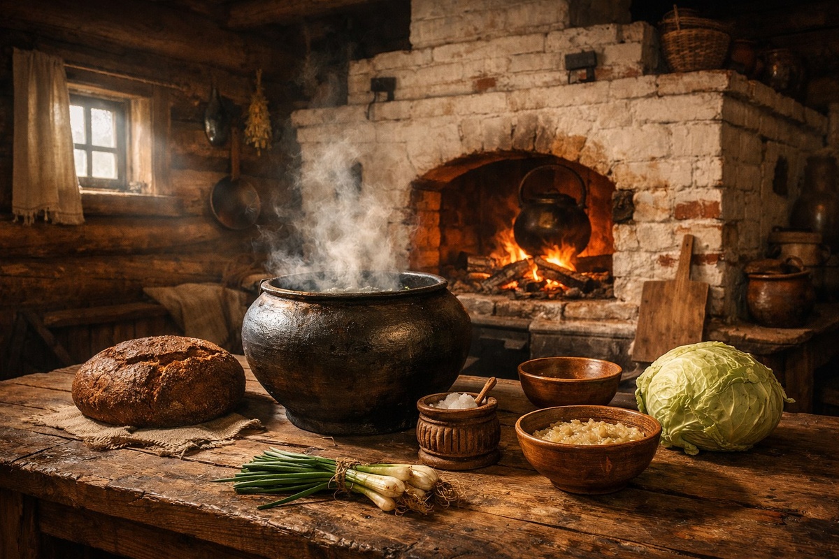 Поговорка «Щи да каша — пища наша» отражает реальную ситуацию того времени. Каша была универсальным, быстрым и сытным блюдом. Супы, в частности щи из квашеной капусты, использовались для наполнения организма необходимыми витаминами. Супы часто варили с различными добавками, что их густота отражала уровень достатка – от скромных «пустых щей» до более «сытных». Мясо также имело свое место, но подчинялось сезонной доступности и религиозным праздникам. Посты существенно ограничивали употребление животных белков, делая рыбу уважаемым источником питания.