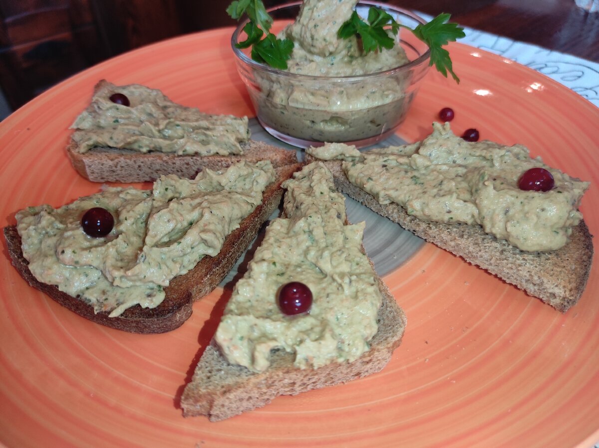 В завершение добавляется творог и приправы по вкусу. Икра готова! Переложите её в холодильник на 30 минут для загустения, а тем временем подсушите черный хлеб в тостере. Подавайте на стол, наслаждаясь насыщенным вкусом!