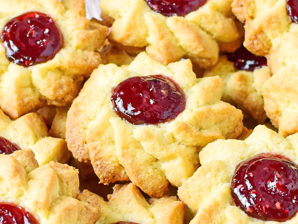 Этот рецепт идеален для каждой хозяйки, ведь он требует лишь базовых продуктов, которые всегда есть под рукой. Заметьте, что для лучшего результата стоит использовать плотный джем, чтобы он не растекался при выпечке.