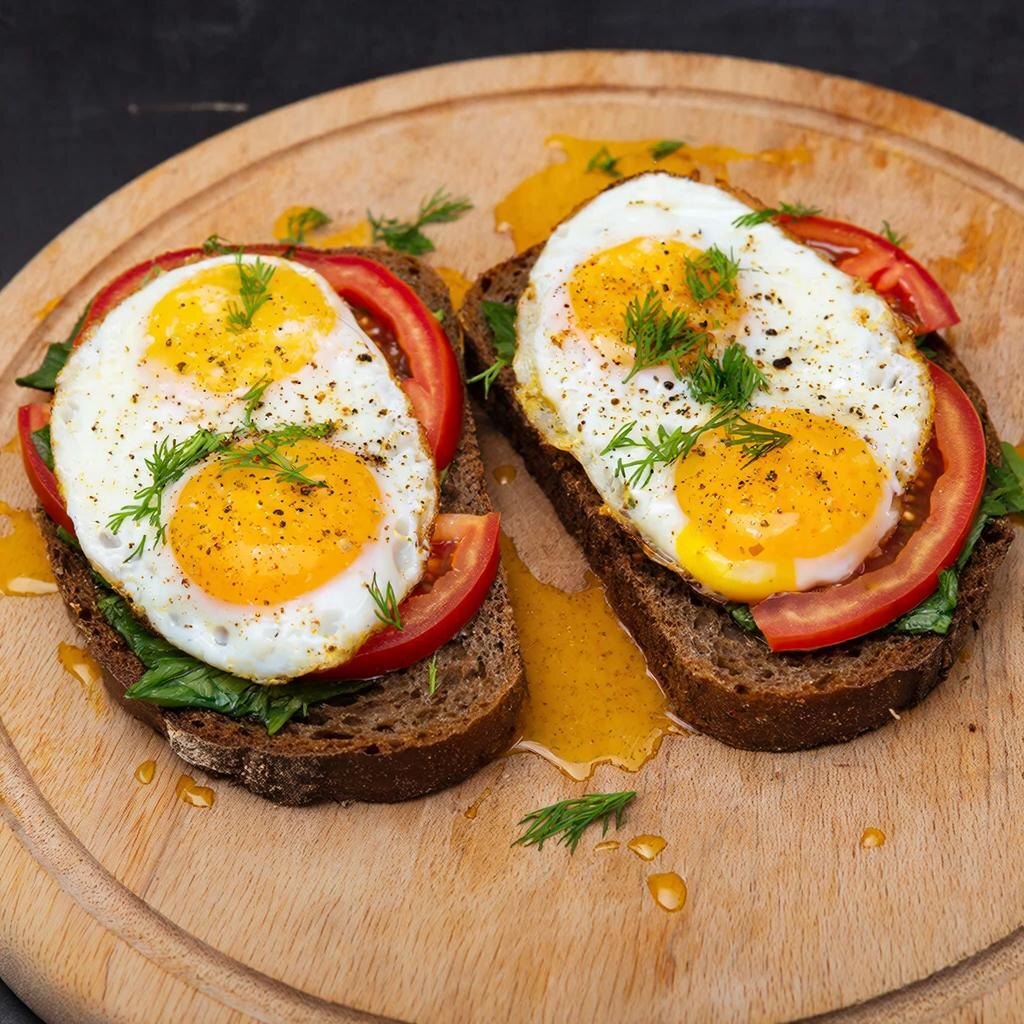 - Авокадо и яйца: Нарежьте авокадо и добавьте яйцо пашот с зеленью.