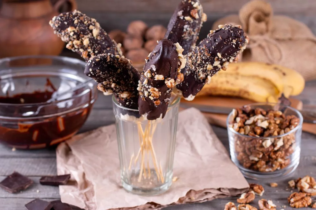 Замороженные бананы в шоколадной глазури – это не только восхитительное, но и безвредное лакомство, состоящее из минимального количества ингредиентов. Сладость бананов прекрасно сочетается с горьковатым шоколадом и хрустящими орехами, создавая уникальный десерт, который быстро готовится и так же быстро исчезает со стола. Выбирайте любой шоколад на свой вкус: черный, молочный или белый. Орехи можно использовать как грецкие, так и арахис, фундук или миндаль. Если вы не являетесь поклонником орехов или просто не можете их найти, замените их кокосовой стружкой или красивой посыпкой для кондитерских изделий. Приготовление этого десерта принесет множество радостных эмоций!