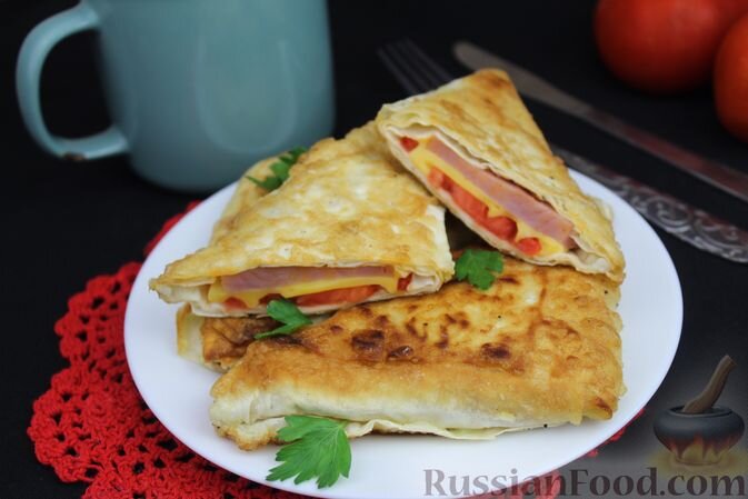 - Ленивые пирожки: Треугольники из лаваша, начиненные ветчиной, помидорами и сыром, обжариваются в яйце. Эти румяные треугольнички завоевали любовь многих гурманов благодаря своему насыщенному вкусу.