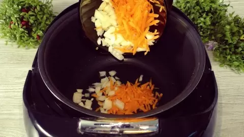 Для начала стоит выставить в мультиварке режим "жарка". Добавьте 2-3 столовые ложки растительного масла и дайте ему прогреться.