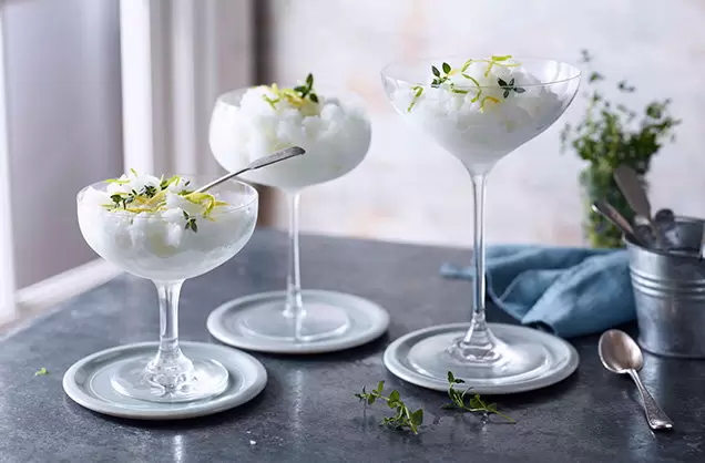 Когда придет время сервировки, снова разомните граниту вилкой и выложите в стаканы. Для изысканного финального штриха украсьте десерт цедрой лимона или лайма, а также свежими веточками мята или тимьяна. Наслаждайтесь этим уникальным напитком, который будет идеальным дополнением к жарким летним вечерам.