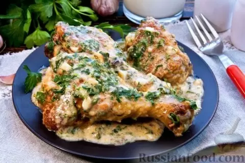 Курица, обжаренная до золотистой корочки и тушеная в молочно-чесночном соусе, порадует даже самых привередливых гурманов. Для приготовления блюда потребуется: