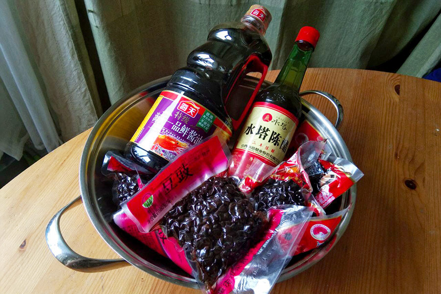 Чтобы не уйти с пустыми руками, были приобретены соевый соус, рисовый уксус и ферментированные бобы.