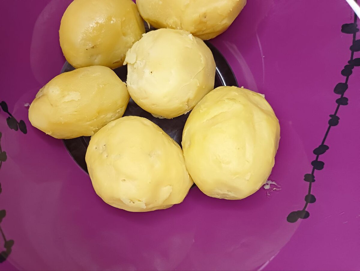 Очистить готовый картофель и превратить в пюре с помощью толкушки.