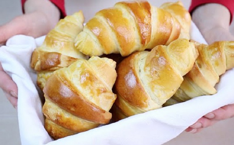 Продолжая процесс, тесто раскатывается в прямоугольник и пропитывается маслом с сахаром, что создаст слоистость, отличающую круассаны от обычных булочек. После формирования треугольников и окончательной расстойки выпекайте их до золотистого цвета.